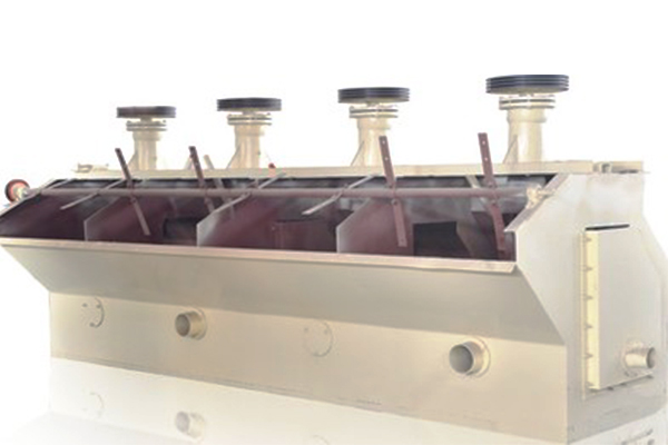 該浮選機由電動機三角帶傳動帶動葉輪旋轉,產生離心作用形成負壓,一方面吸入充足的空氣與礦漿混合,一方面攪拌礦漿與藥物混合,同時細化泡沫,使礦物粘合泡沫之上,浮到礦漿面再形成礦化泡沫。調節閘板高度,控制液面,使有用泡沫被